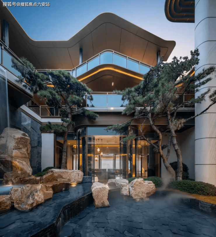 外立面采用天青陶板(1200℃高温烧制),复刻南宋汝窑釉色;园林以《溪山行旅图》为灵感,打造15米叠瀑景观,实现“山水围合”的诗意栖居。