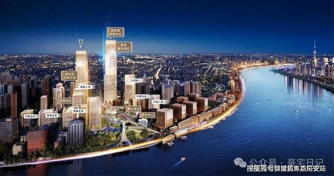 绿地外滩中心项目占地面积约12.67万㎡,总建筑面积约119.9万㎡,地上建筑面积中,计容建筑面积约70.19万㎡,其中商办57.5558万㎡,住宅12.6342万㎡。项目包括4栋甲级写字楼(T1,T3分别为300米+240米)、7栋总部办公楼、购物中心、超高层星级奢华酒店、8栋住宅楼等。其中300米的超高层规划蓝图,在天际建筑汇聚的外滩,再一次刷新了城市天际线层为五星级酒店(丽思卡尔顿)38-40-45层为行政公馆!中部7-37层为甲级办公,底部为商业及大堂。